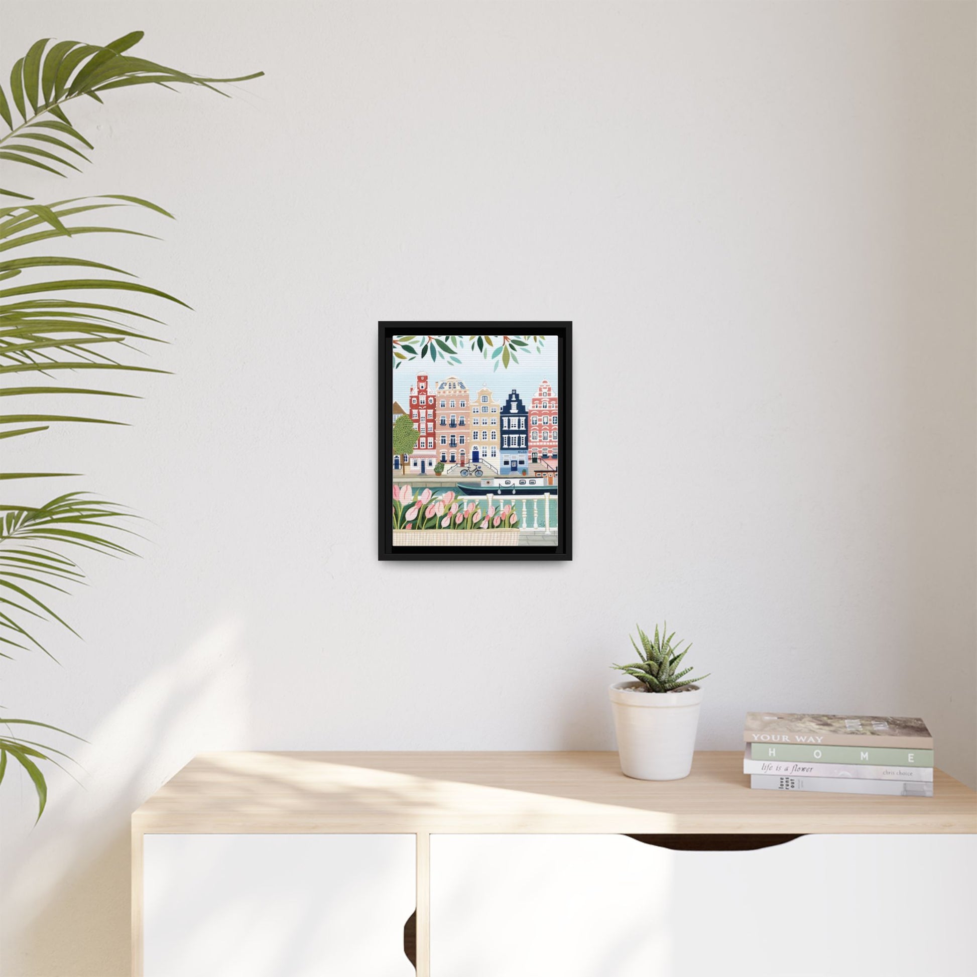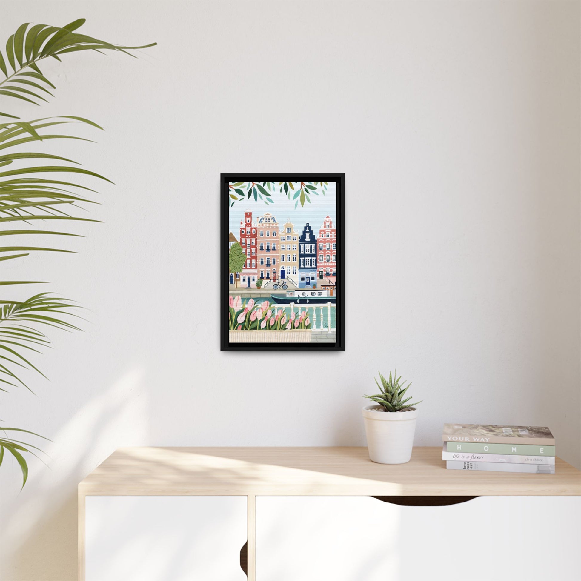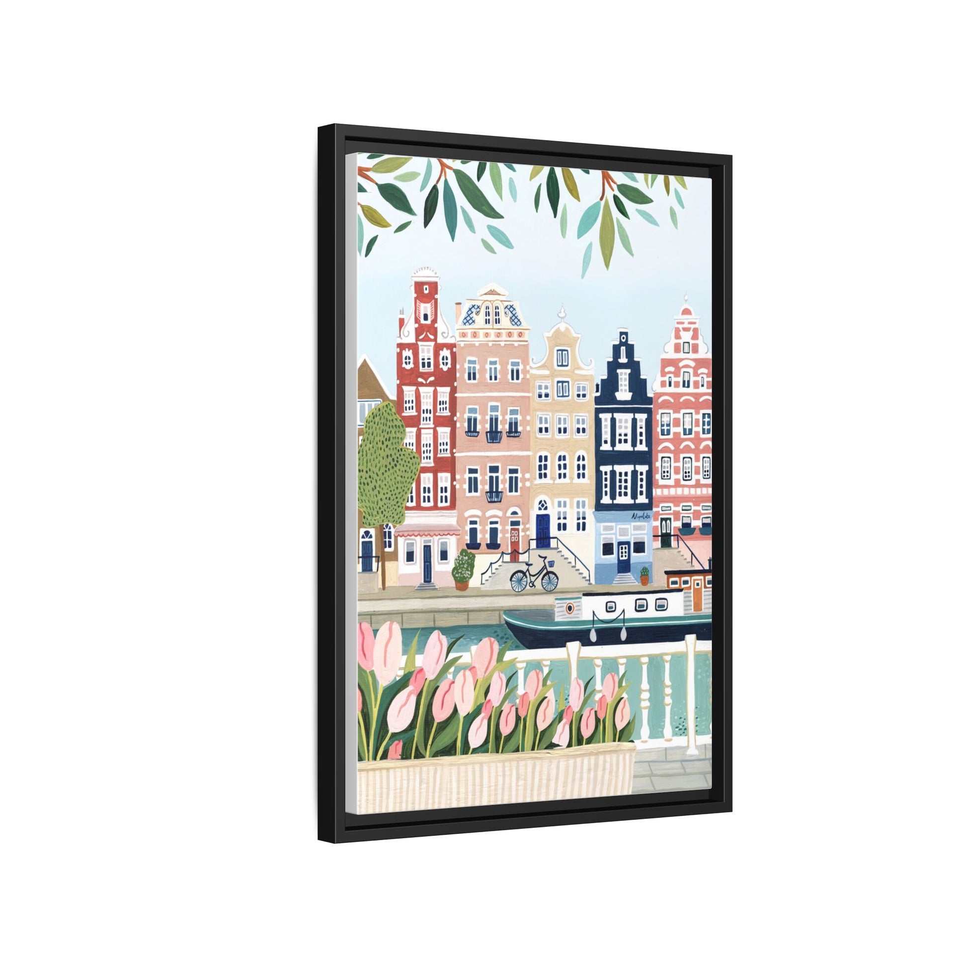 Amsterdam Framed Canvas Art, Colorful Cityscape, Vibrant Home Decor, Wall Art for Living Room, Housewarming Gift, Artistic Wall Decor, Floral Design