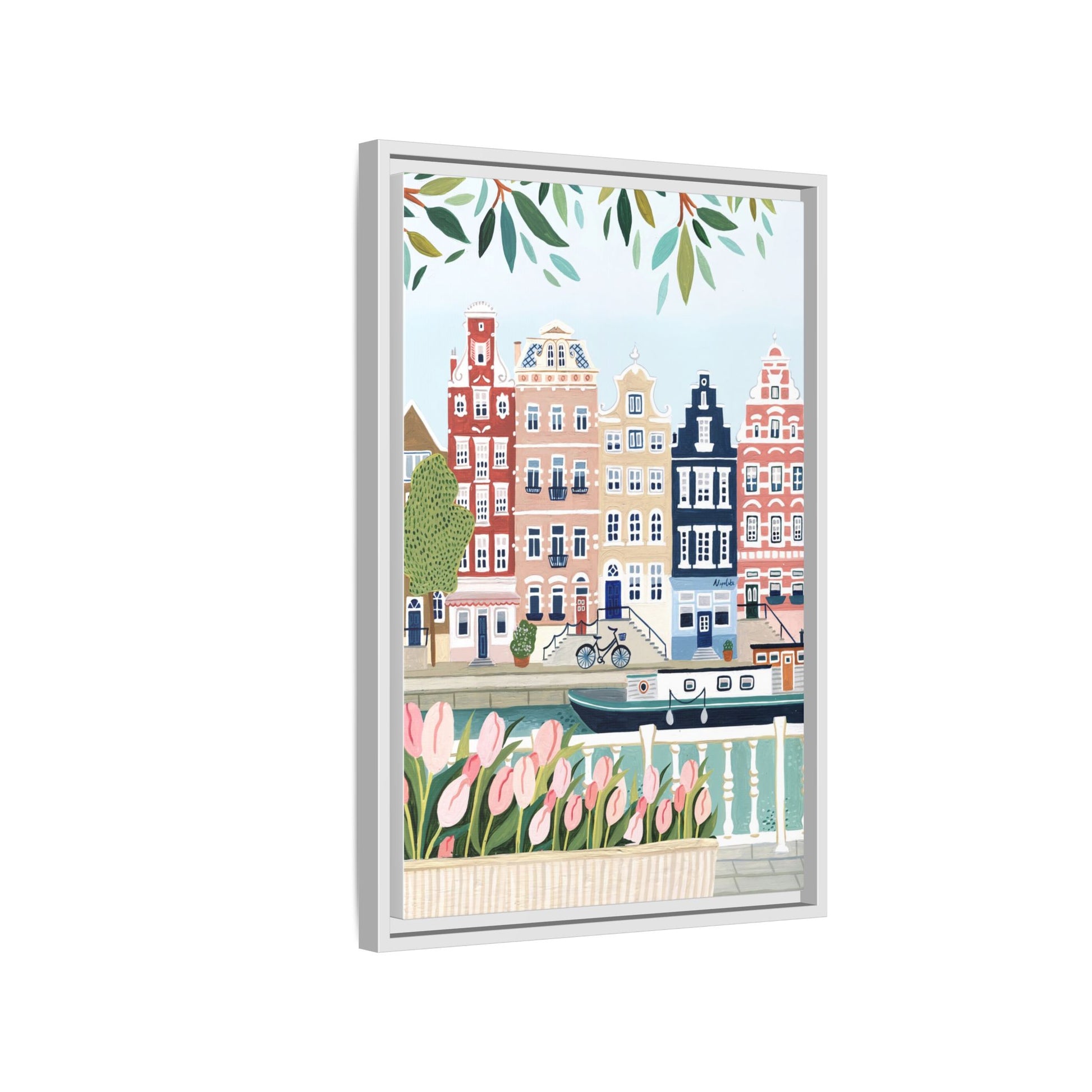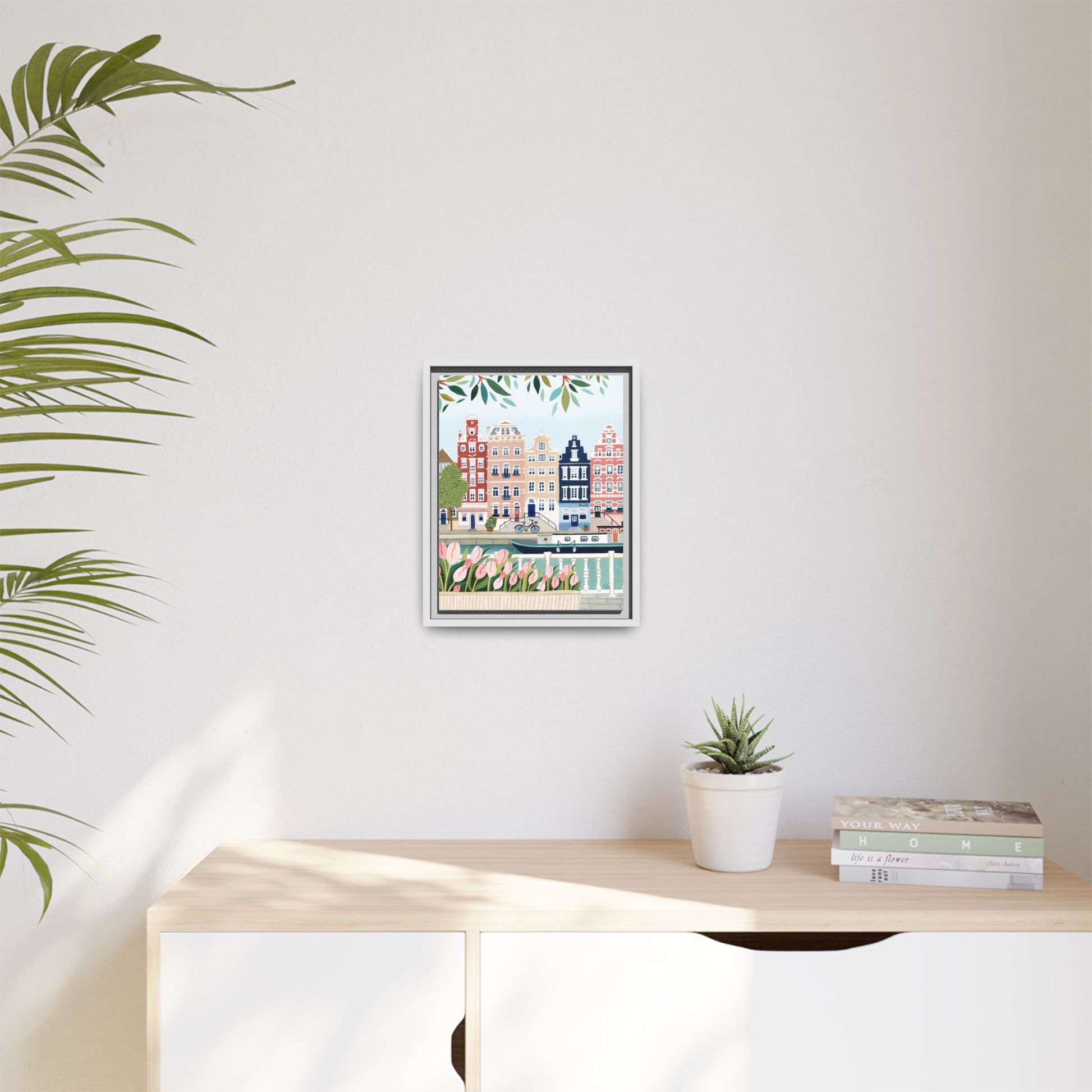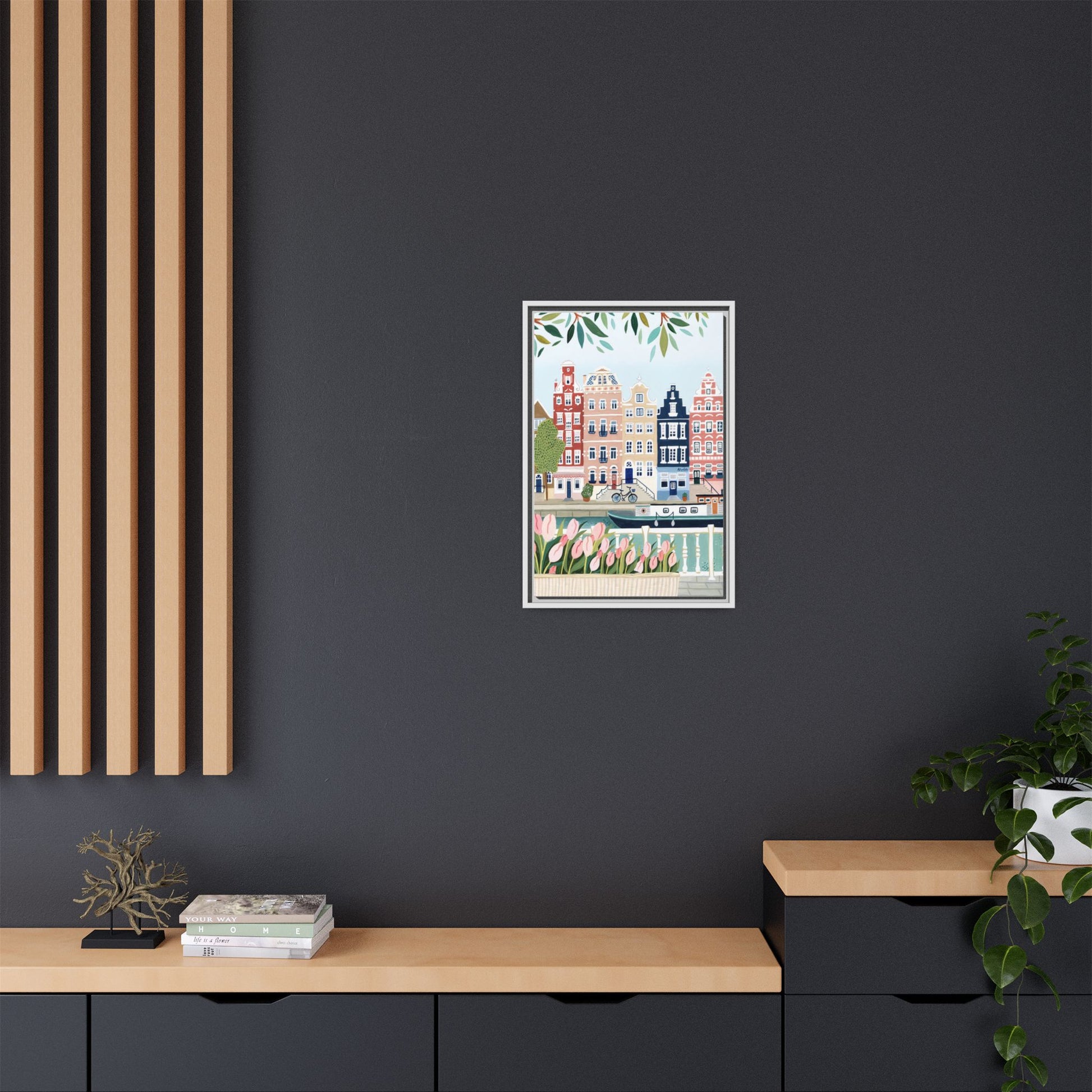Amsterdam Framed Canvas Art, Colorful Cityscape, Vibrant Home Decor, Wall Art for Living Room, Housewarming Gift, Artistic Wall Decor, Floral Design